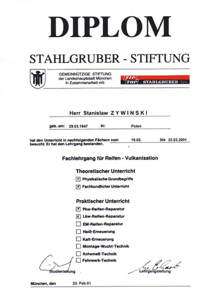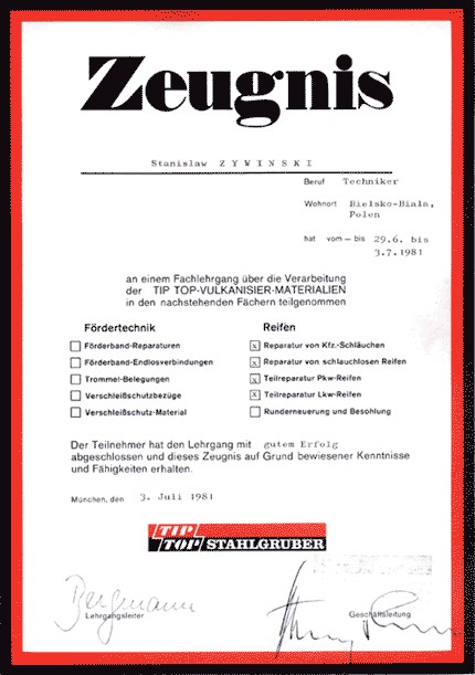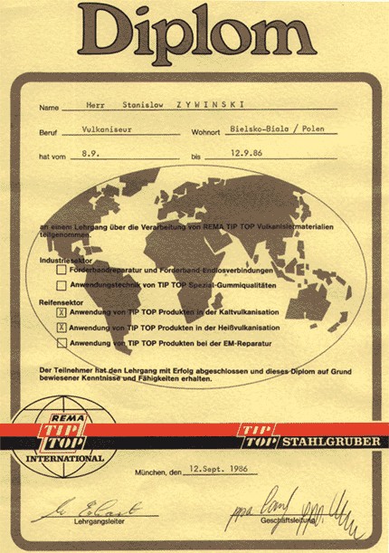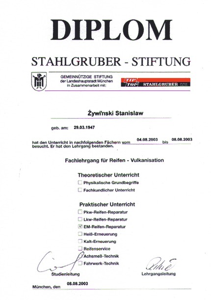 Posiadamy olbrzymie doświadczenie 30 lat współpracy z firmą Rema Tip-Top Stahlgruber z Monachium, co zaowocowało doskonałą jakością wykonanych usług. Wszystkie naprawy przeprowadzamy na bezdeformacyjnym urządzeniu Tire Contur.